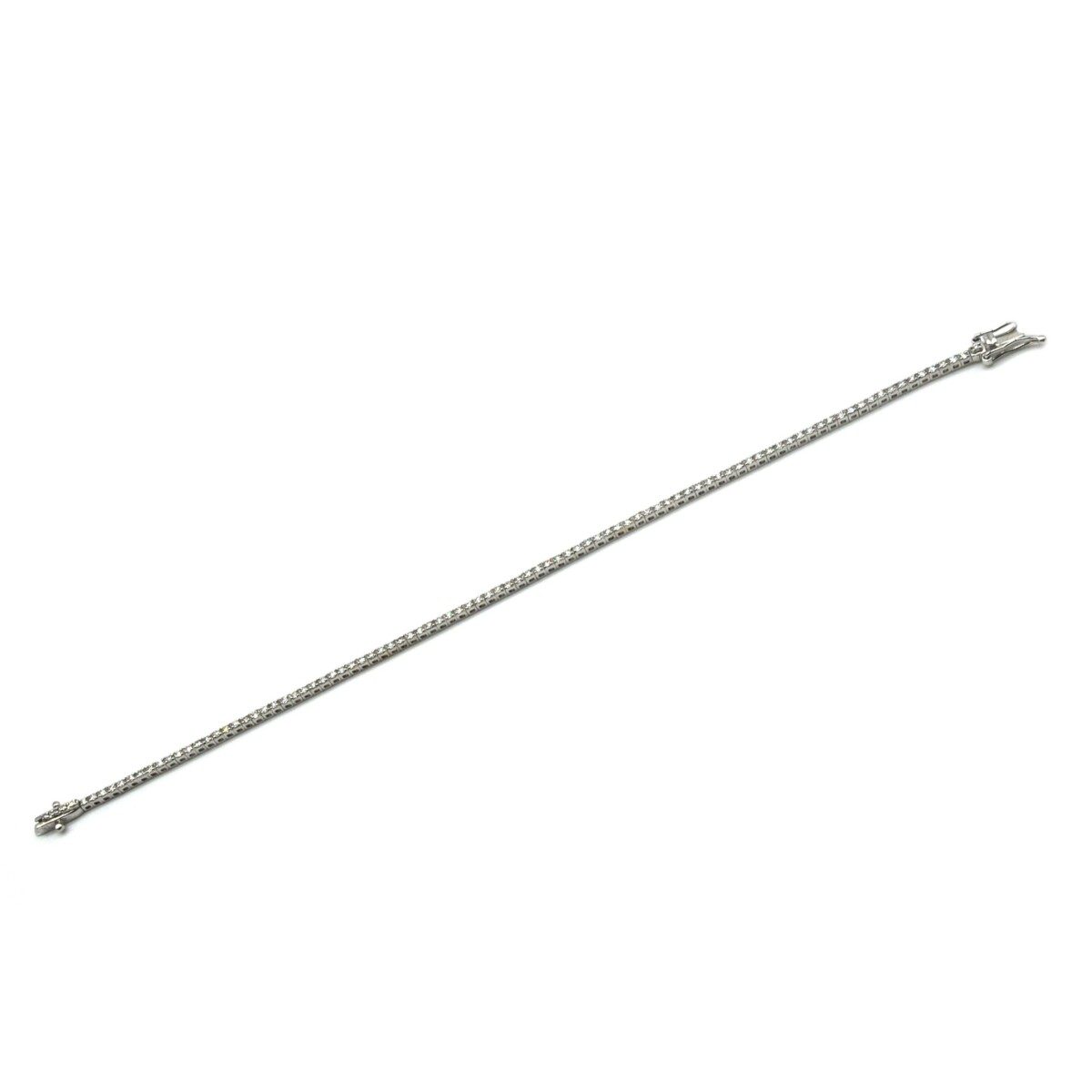Exclusive design tennis bracelet, handmade in our workshop in 750/°°° white gold with 87 brilliant-cut diamonds weighing a total of 1.18 carats. The bracelet is 16,5 cm long and is suitable for both men and women. The bracelet can be made with various carats of diamonds and therefore various budgets. Write to us for any quotes. Furthermore, if you need a different length, write to us and we will send it to you in the requested size.