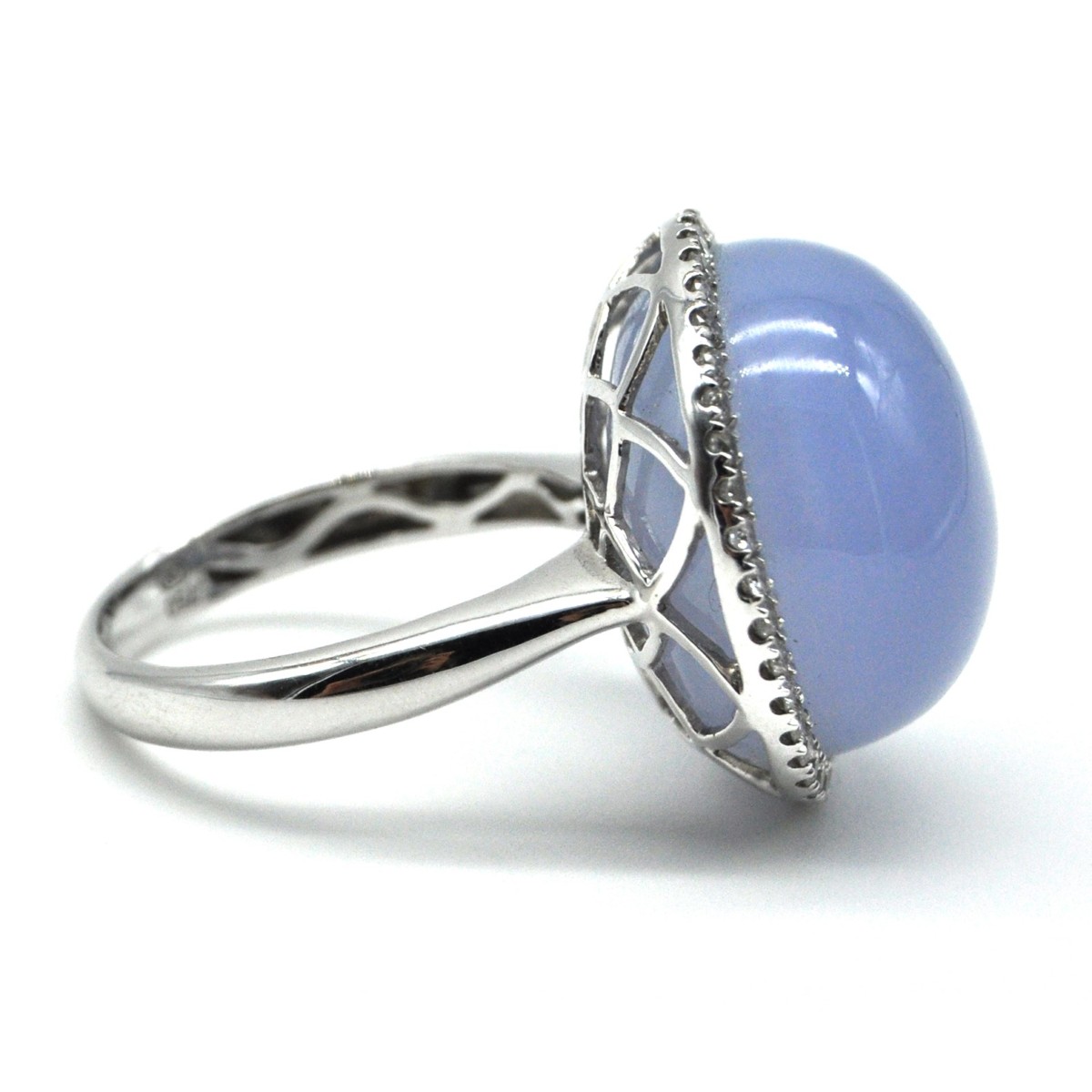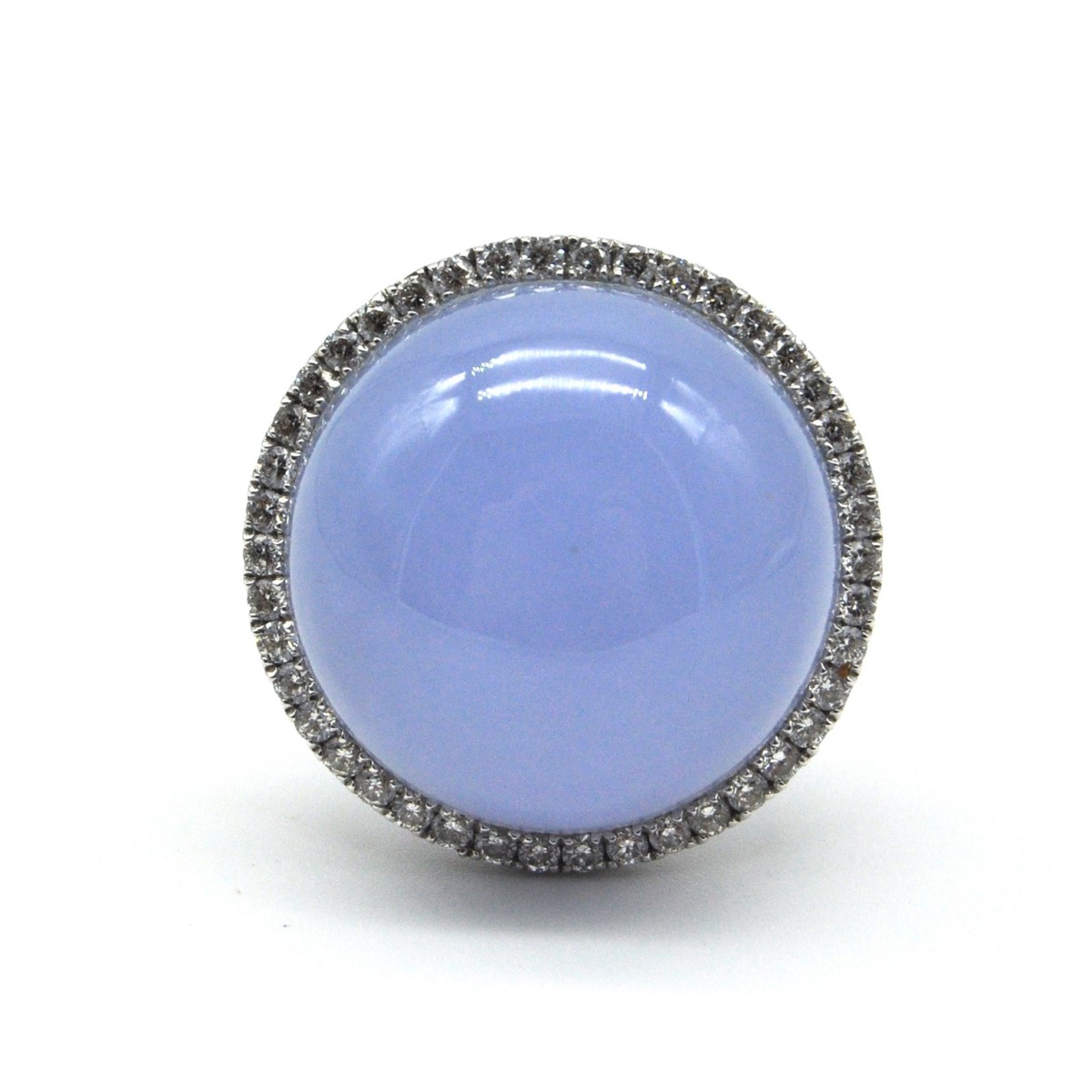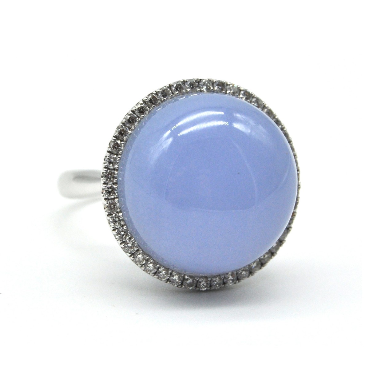Ring handmade in our laboratory in white gold 750 / °°° cabochon cut chalcedony and brilliant cut diamonds with a total weight of 0.47 carats.