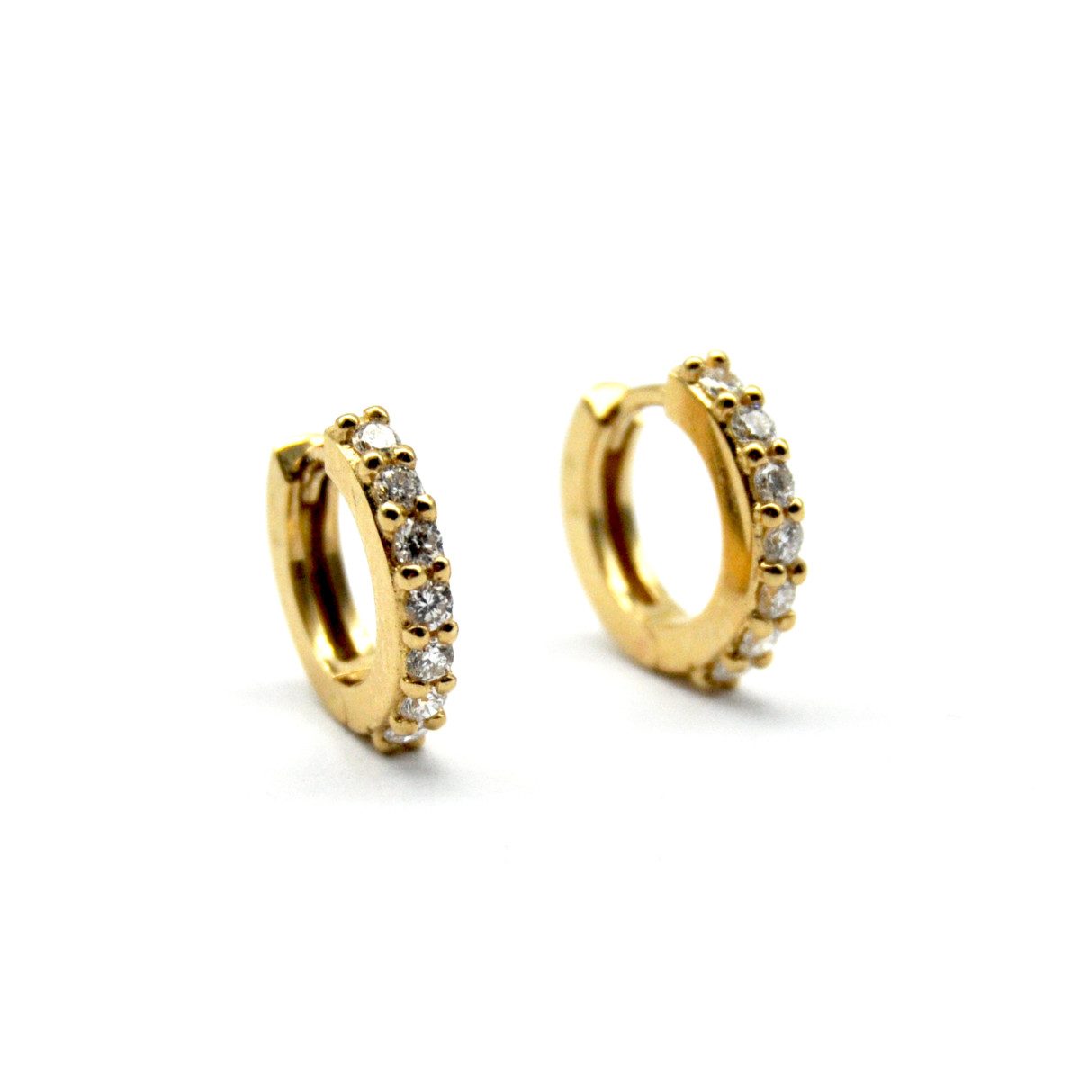 Hand-made hoops in our laboratory in 750/°°° rose gold with brilliant-cut diamonds weighing a total of 0.22 carats.
