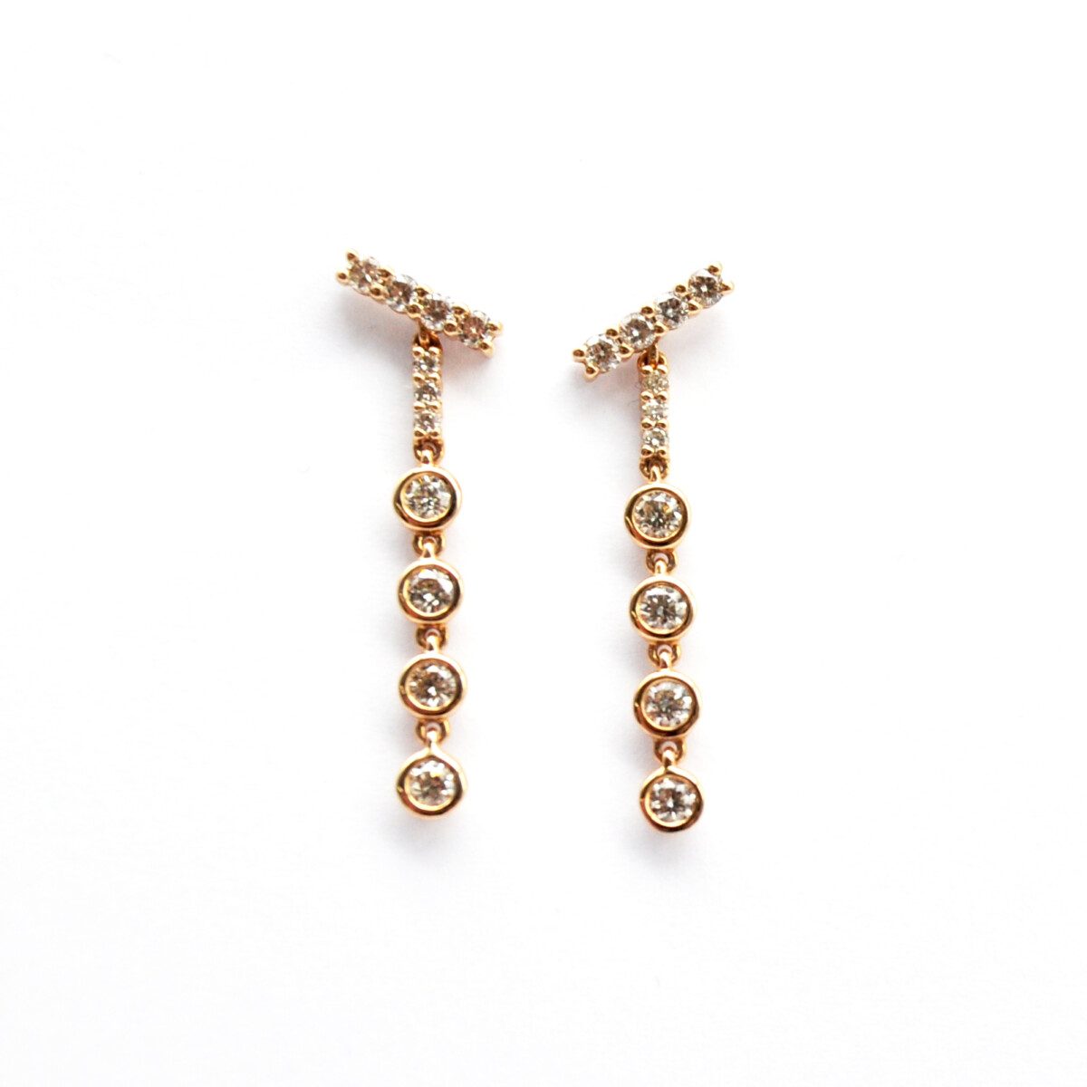 T earrings and pendant dots handmade in our laboratory in 750/°°° rose gold, with natural brilliant-cut diamonds weighing a total of 0.64 carats.