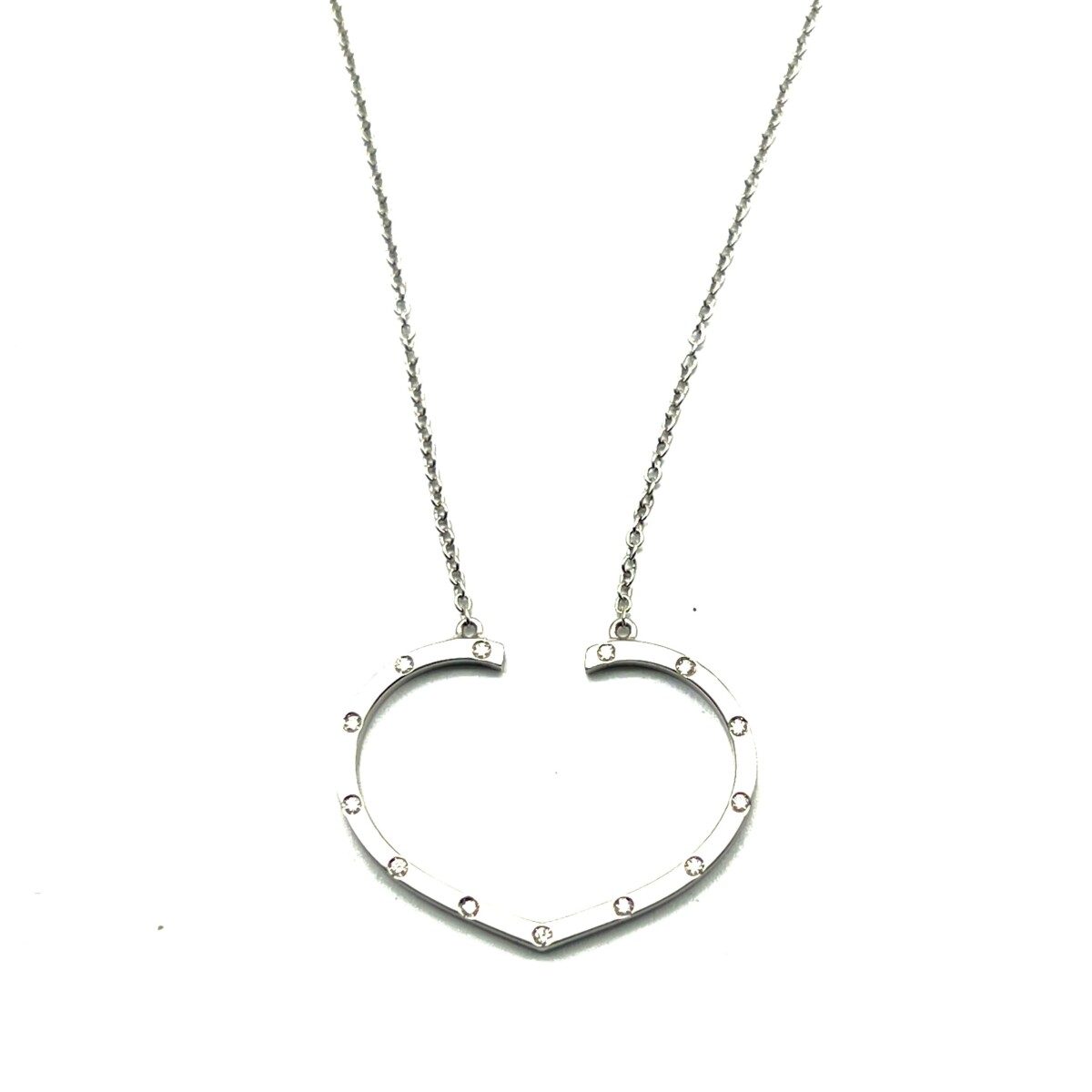 The INSIEME heart-shaped ring holder necklace is handmade in our laboratory in 750/°°° white gold with 13 natural brilliant-cut diamonds with a total weight of 0.08 carats.