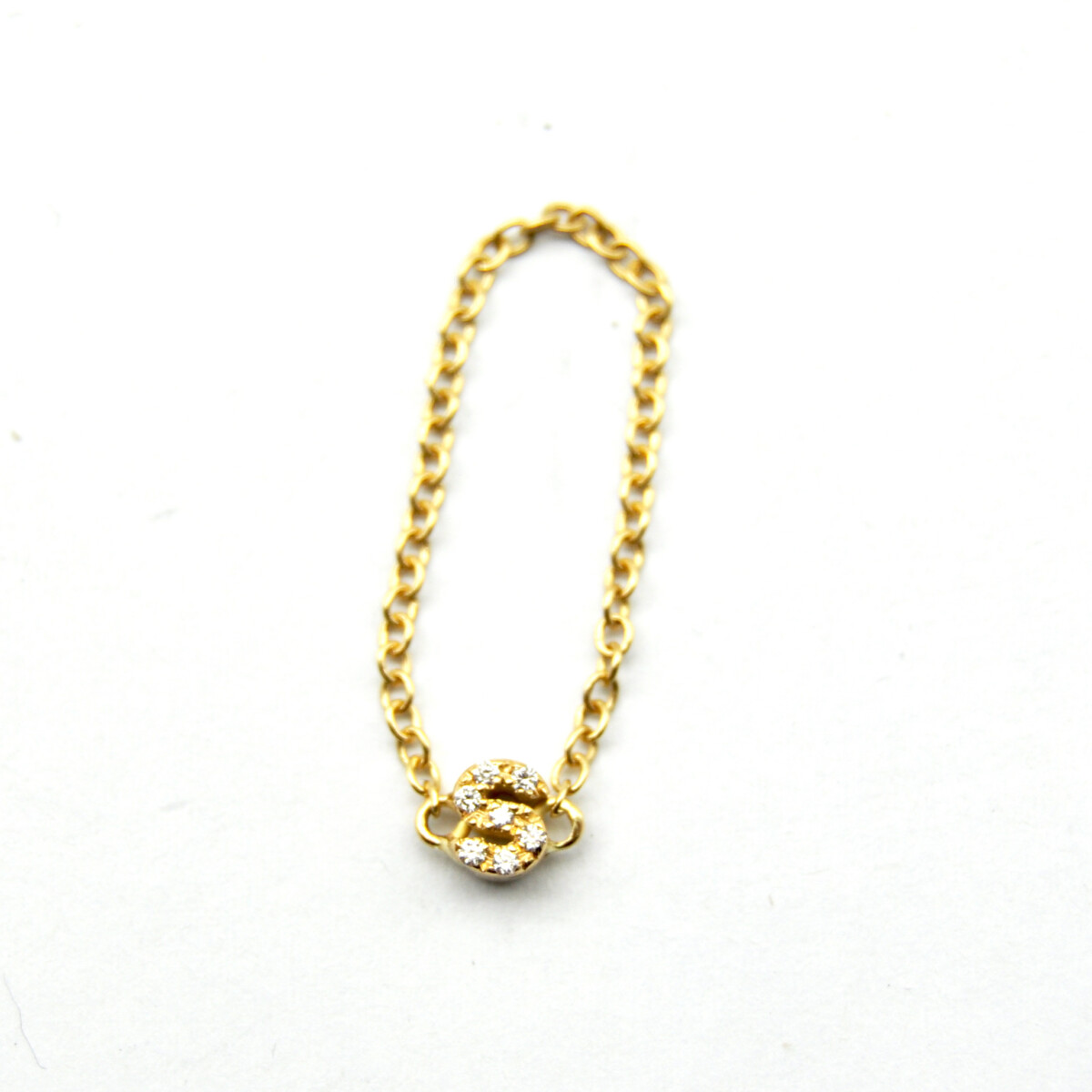 Yellow gold chain ring with diamond initial