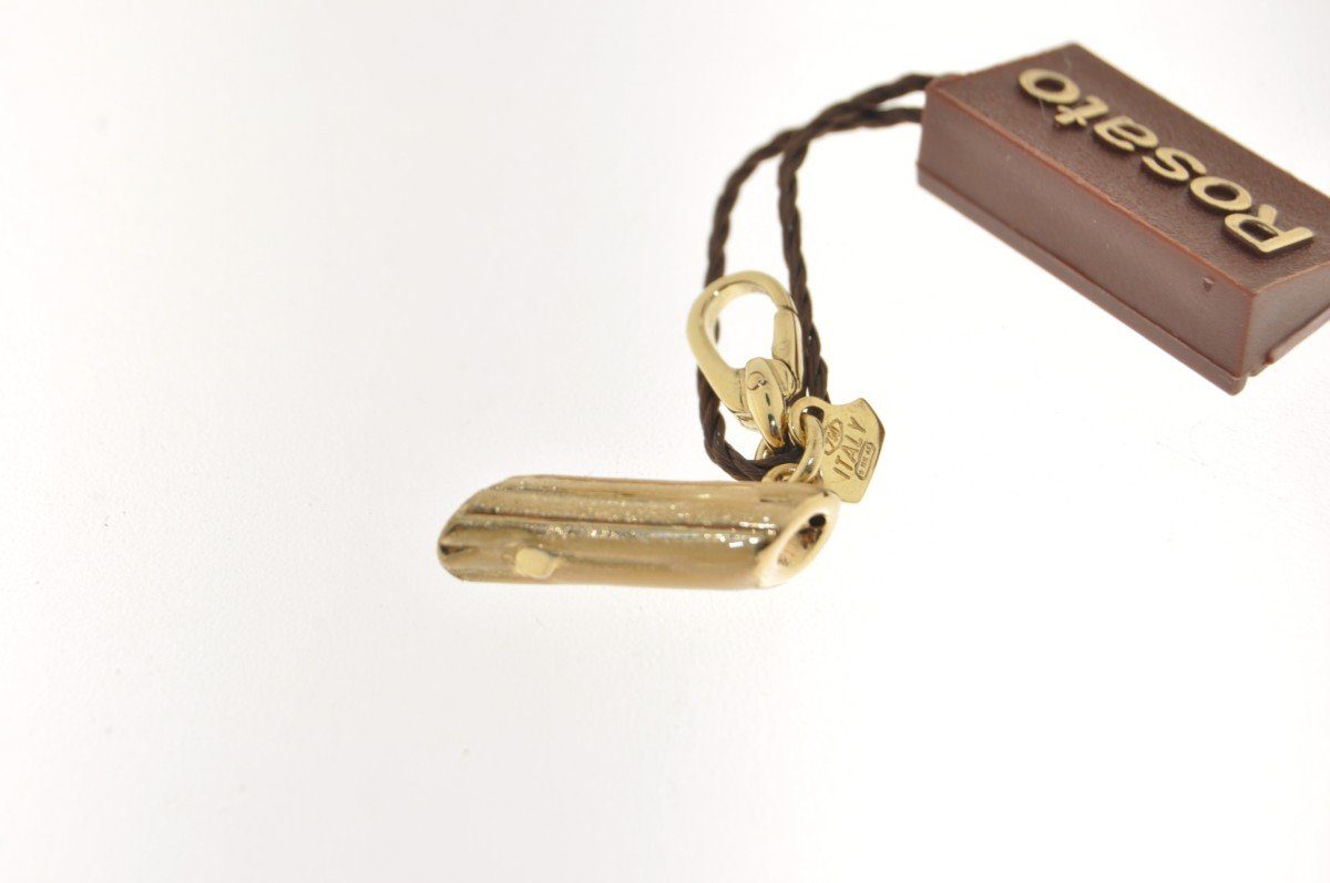 Charm dal design esclusivo Rosato Gold Collection raffigurante un tipo di pasta ovvero una Penna. Il ciondolo, largo circa 2 cm., è in oro giallo titolo 750/°°°. Il ciondolo è dotato di un comodo moschettone per agganciarlo facilmente a bracciali collanine o orecchini. Per eventuali dubbi chiamateci allo 011-5623663 o scriveteci a info@viranogioielli.it
