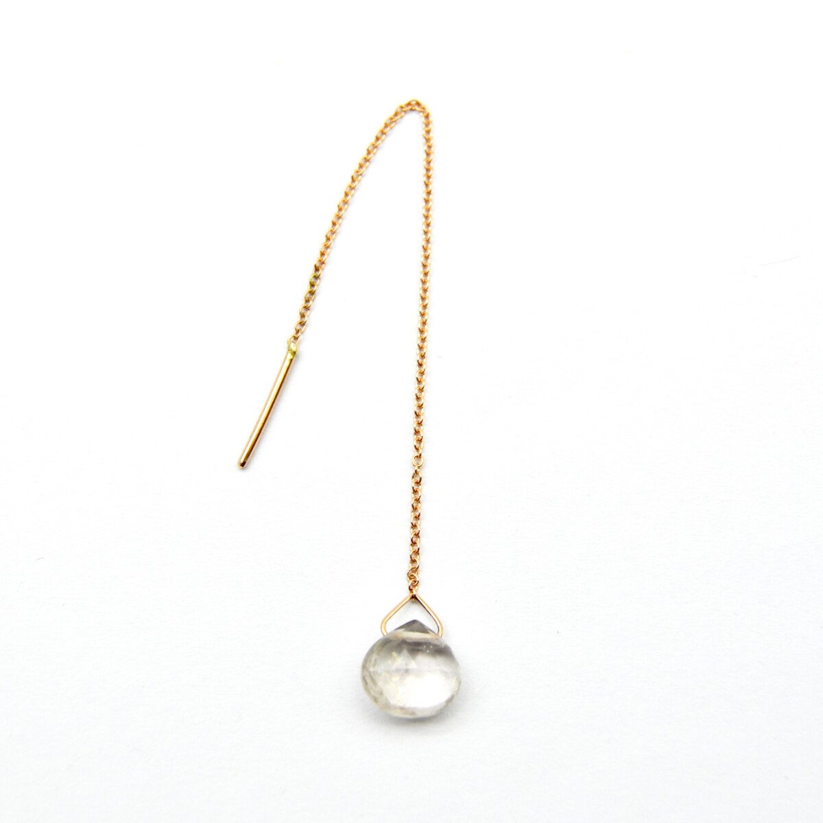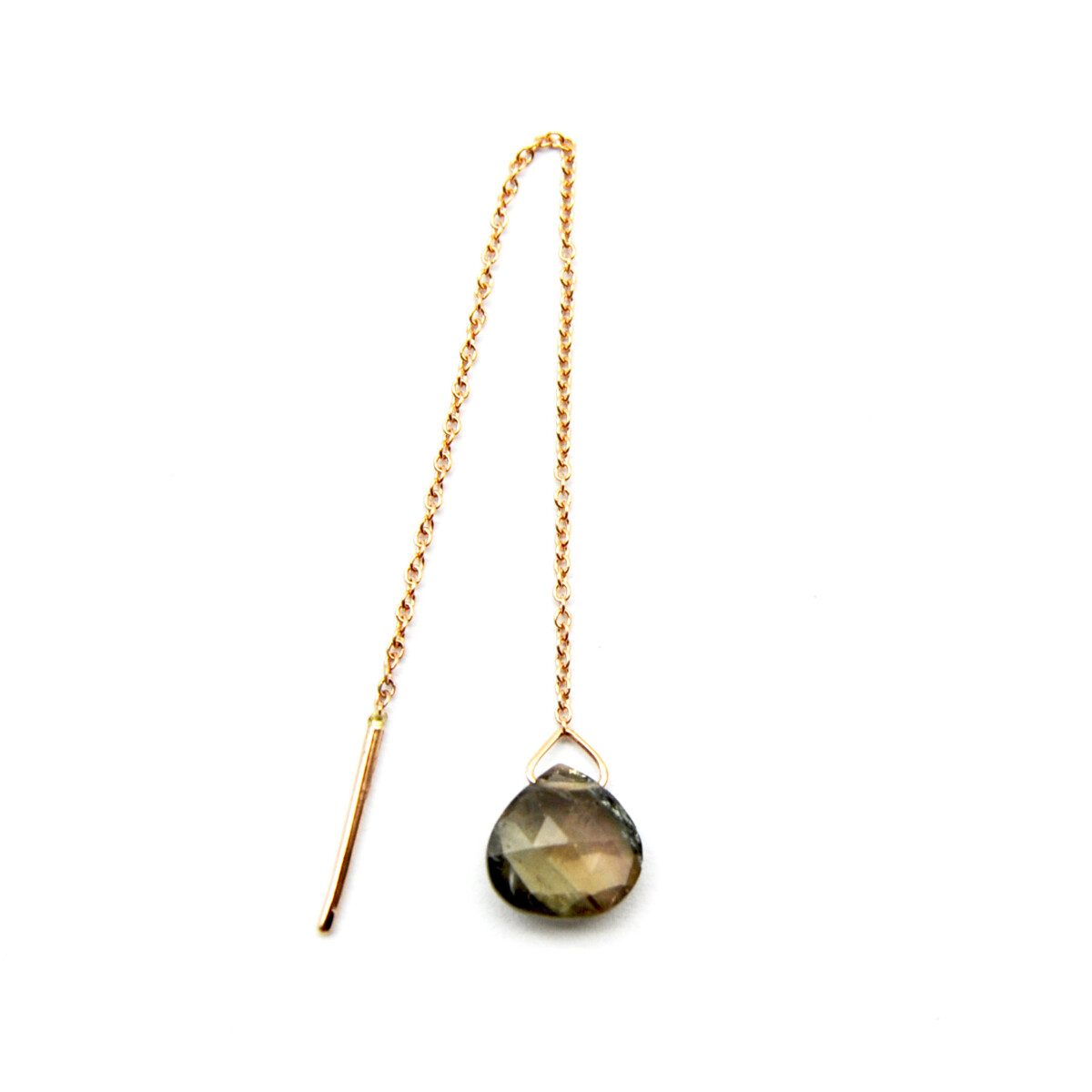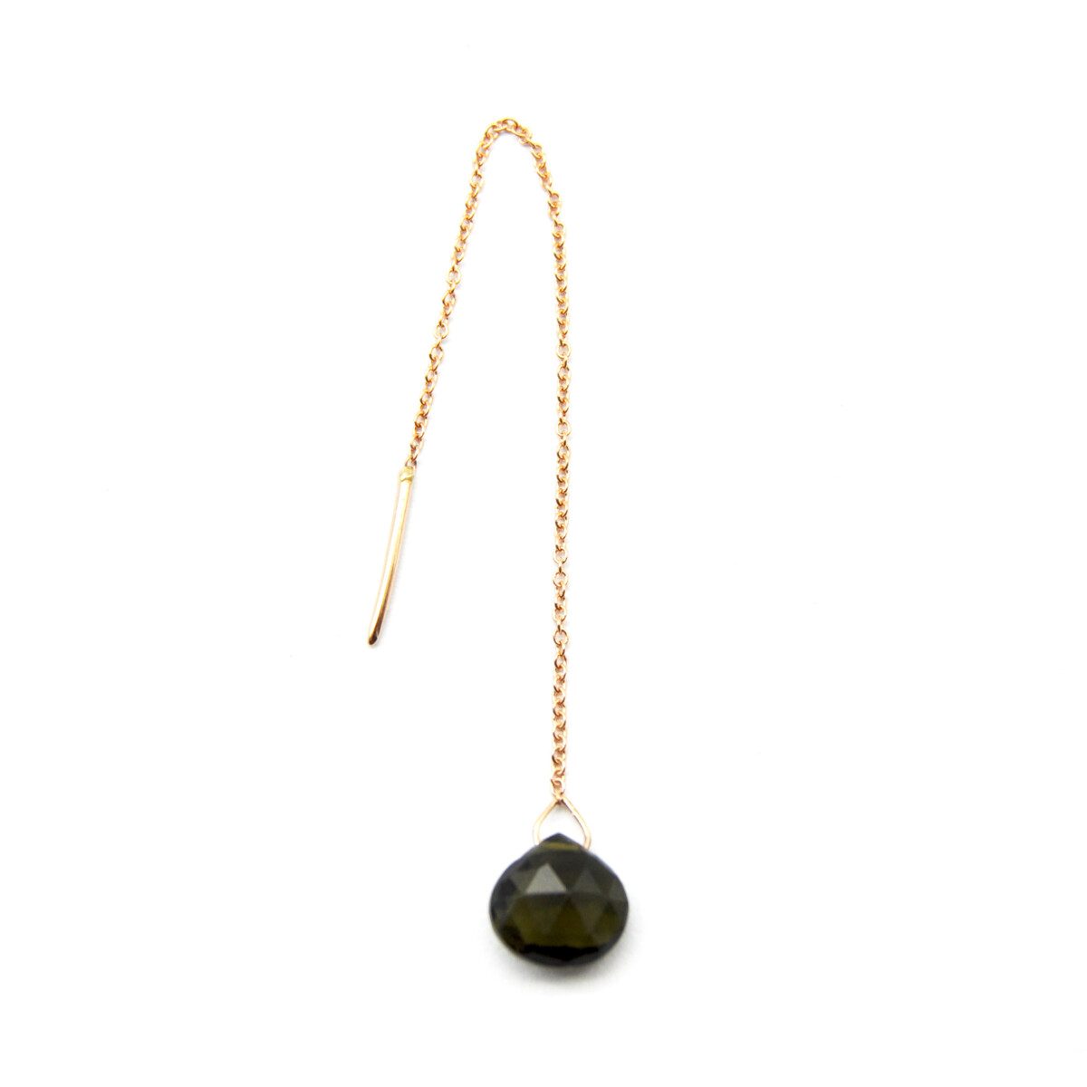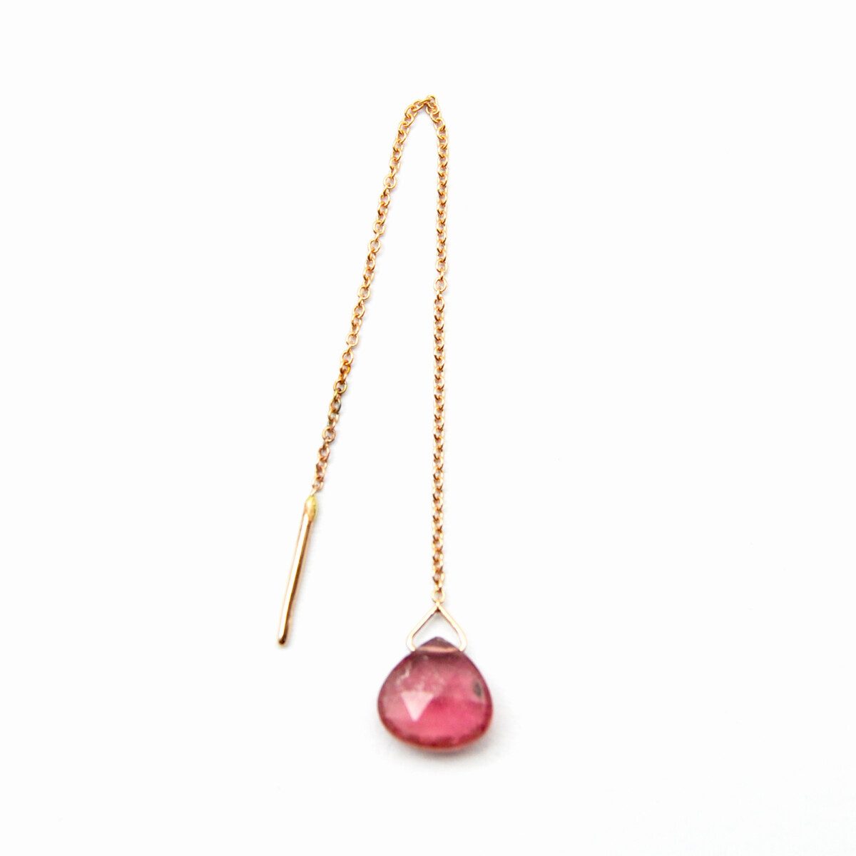 Orecchino singolo realizzato a mano presso il nostro laboratorio in oro rosa titolo 750/°°°, con tormalina naturale taglio briolette.